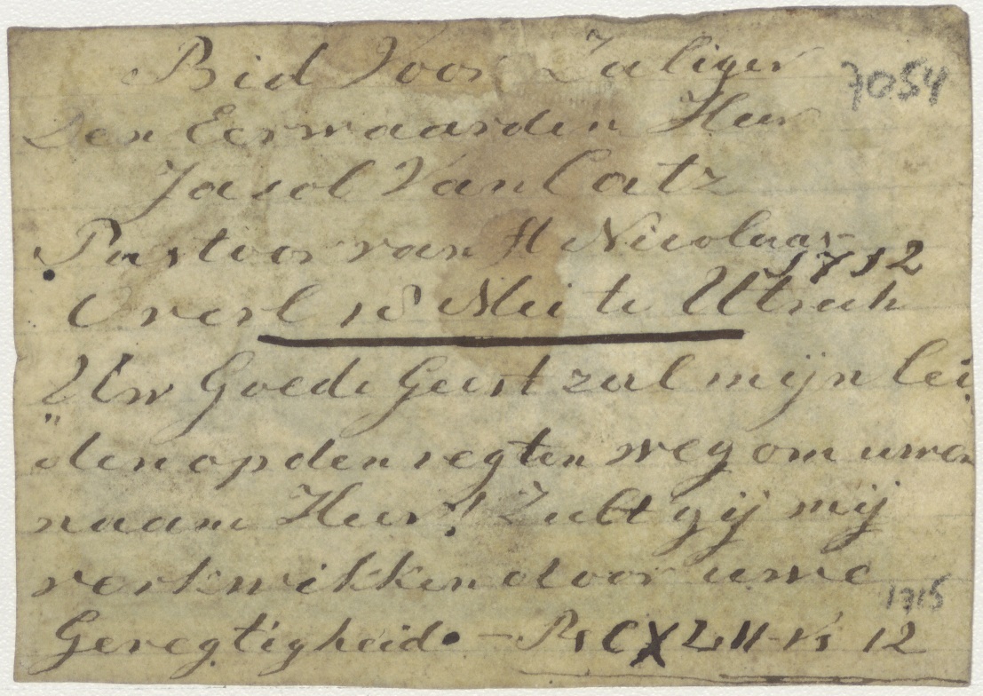 Het onweer gestilt (Math. 2), kz. Religieus; bid voor ziel Van Catz (+1712) Utrecht