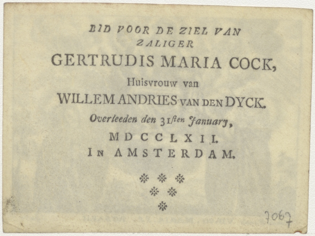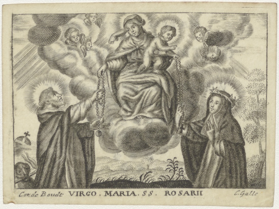 H. Maria del Rosarii, Simon Stock(?) en non, kz. Bid voor ziel van den Dyck-Cock (+1762) Amsterdam