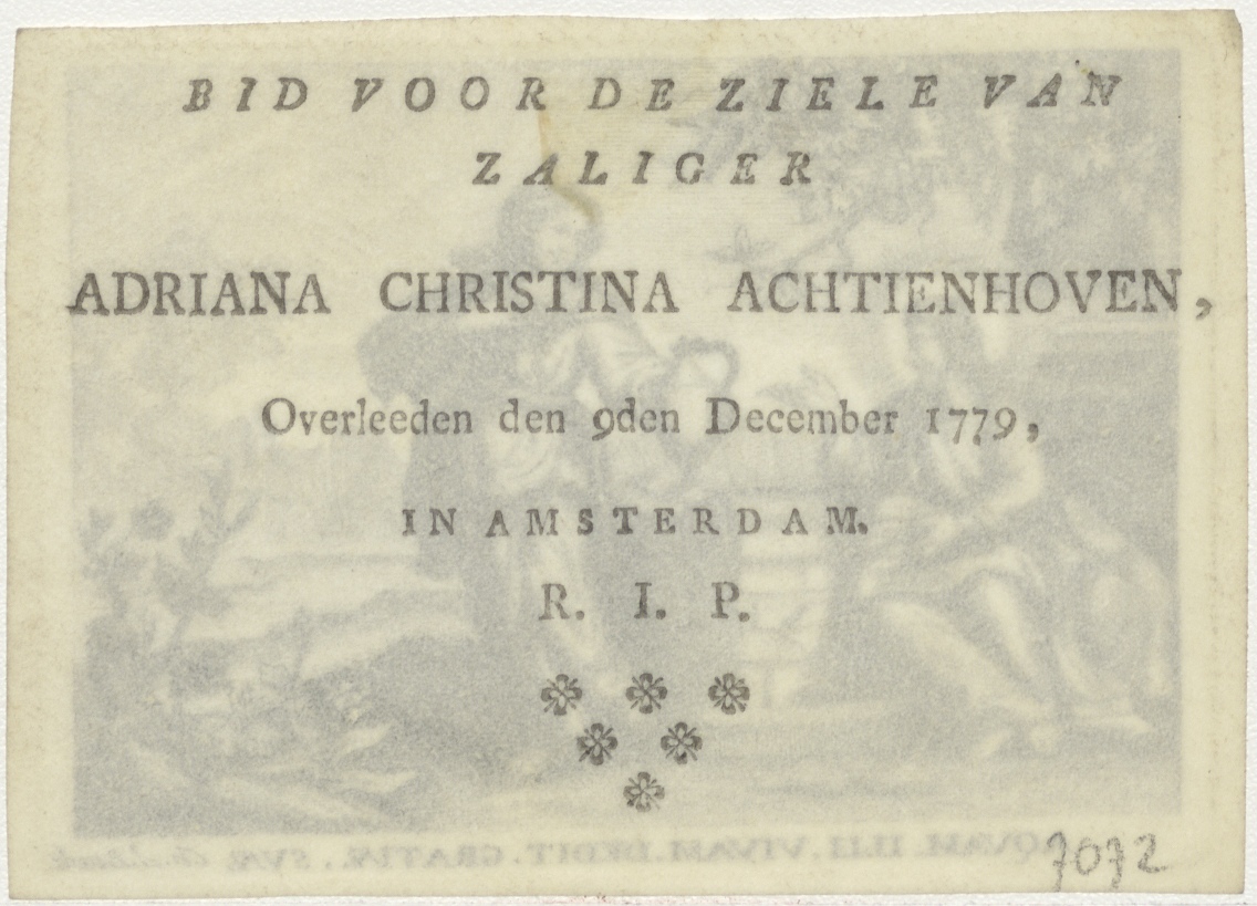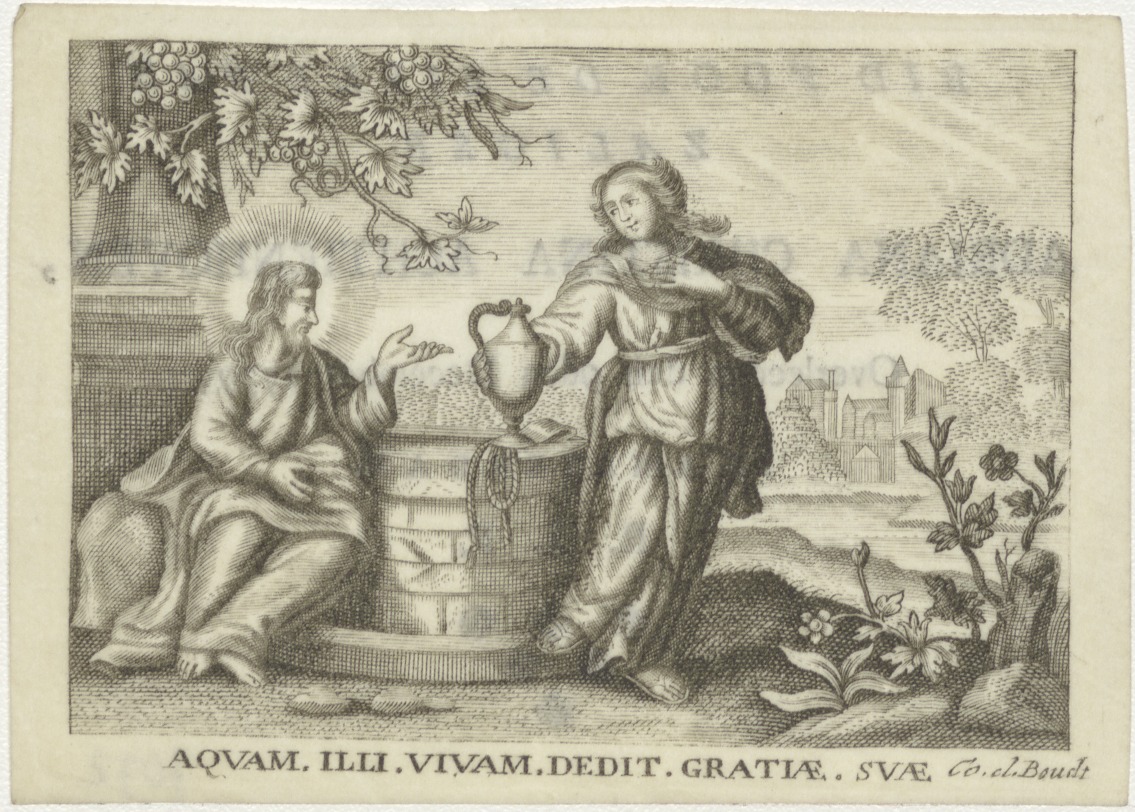 Christus met de Samaritaanse vrouw bij de bron, kz. Bid voor ziel Adriana Christina Achtienhoven (+1779) Amsterdam