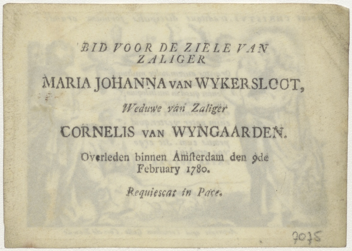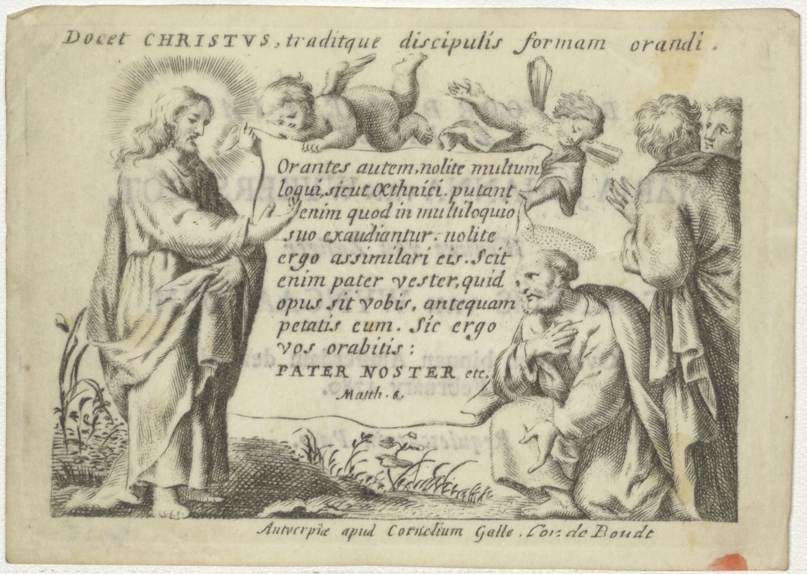 Christus leert het Onze Vader, kz. Bid voor ziel van Wijkersloot-van Wijngaarden (+1780) Amsterdam