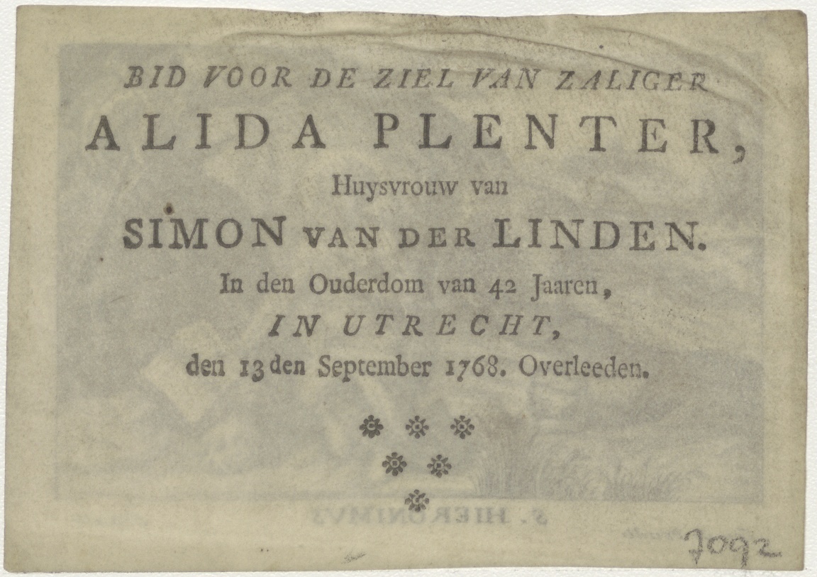 H. Hieronimus, kz. Bid voor ziel Plenter-van der Linder (+1768) Utrecht