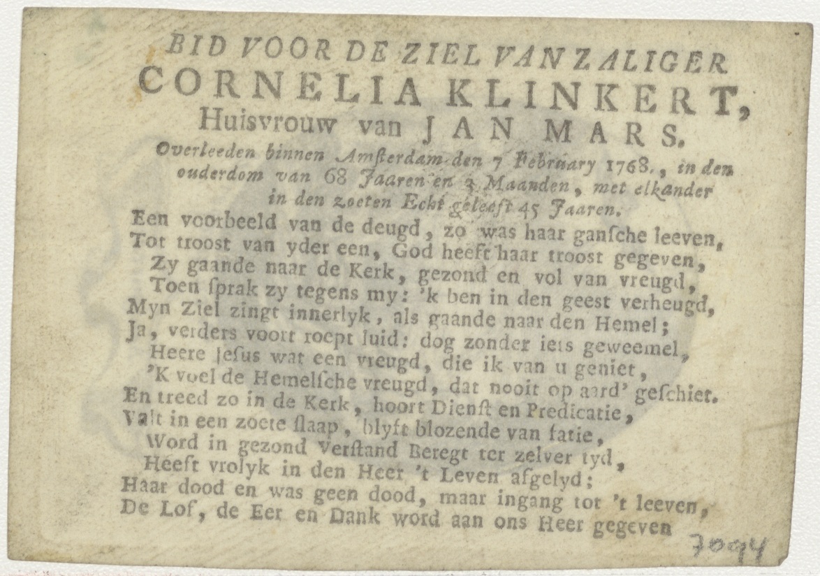 H. Geest (serie); F. Benignitatis, kz. Bid voor ziel Klinkert-Mars (+1768) Amsterdam