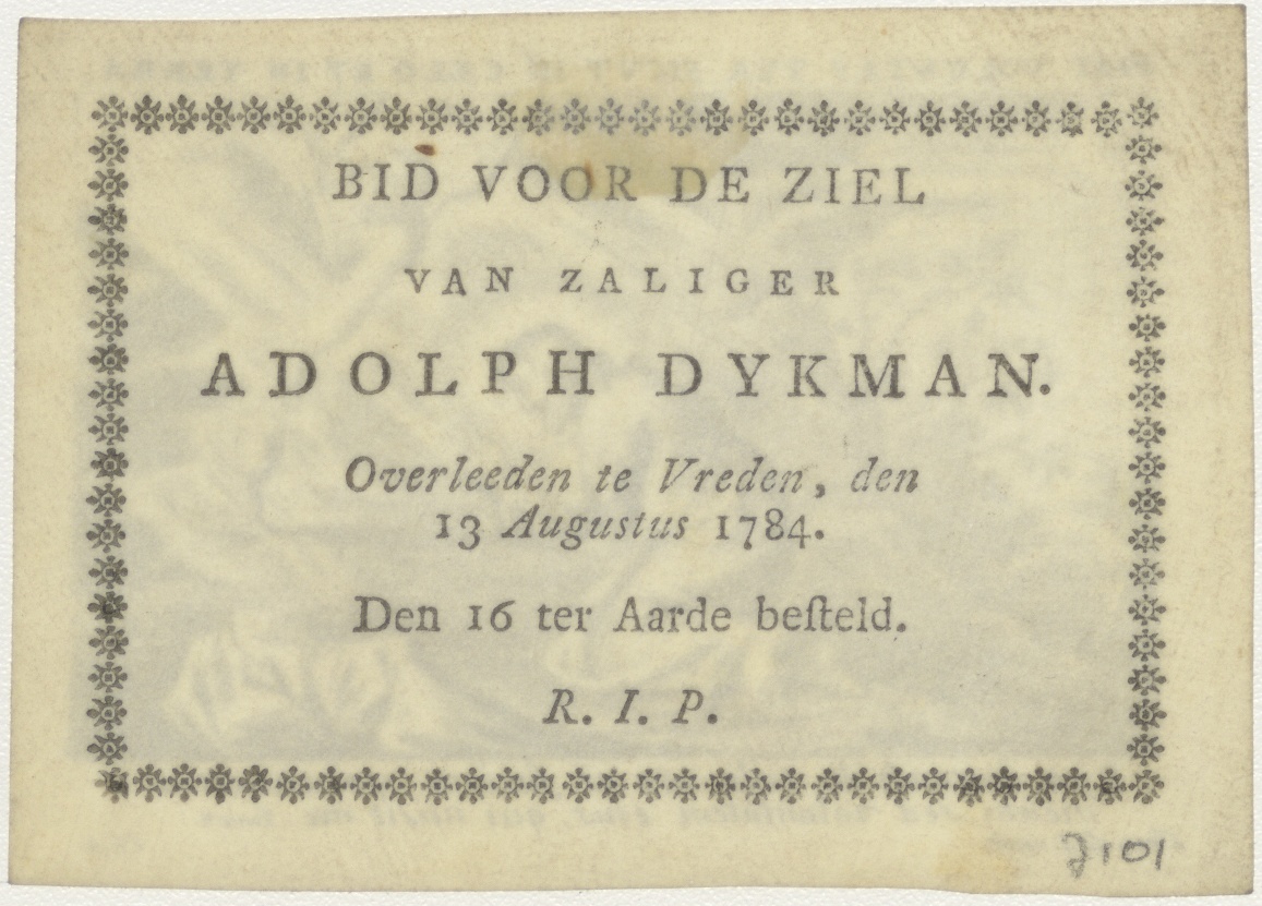 Christus ontvangt H. Sacrament in de hof van olijven, kz. Bid voor ziel Dijkman (+1784) Vreden