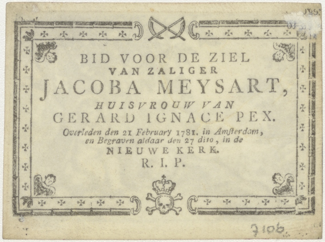 Johannes kind met schaap of lam, kz. Bid voor ziel Pex-Meysart (+1781) Amsterdam