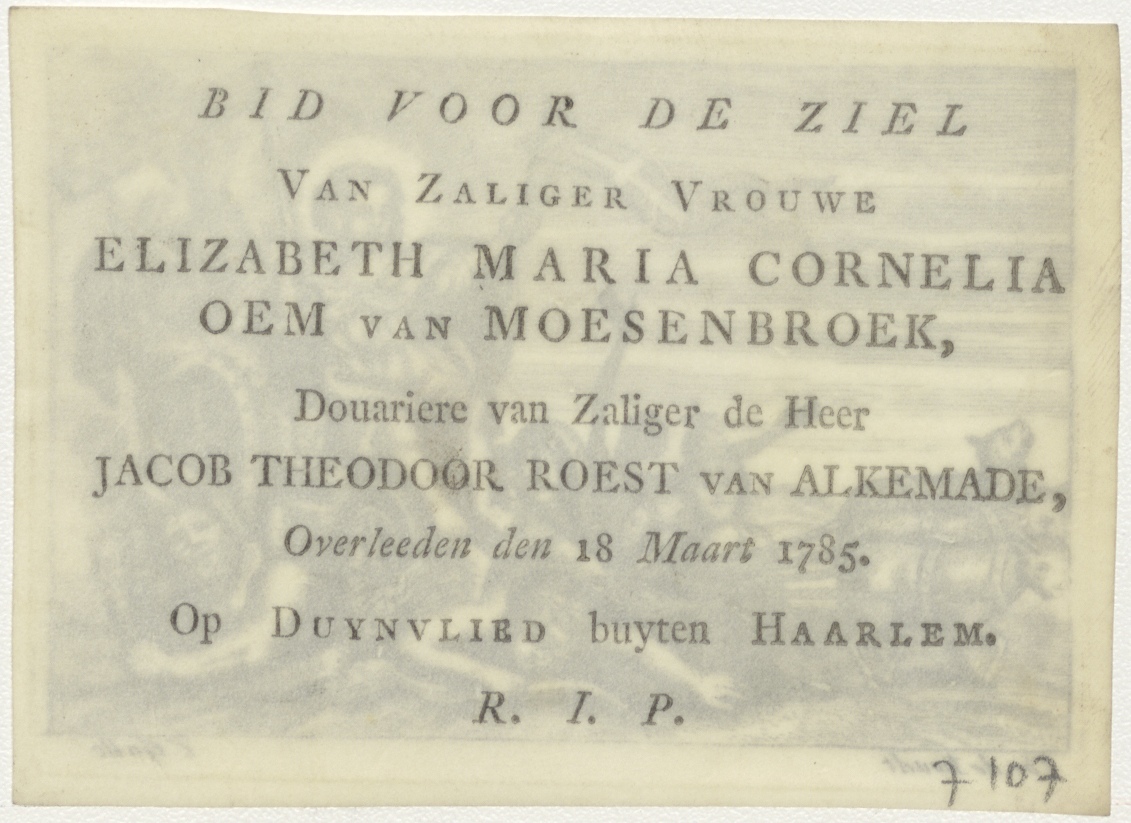 Christus triomfator, kz. Bid voor ziel Roest van Alkemade-Meesenbroek (+1785) Duynvlied buiten Haarlem