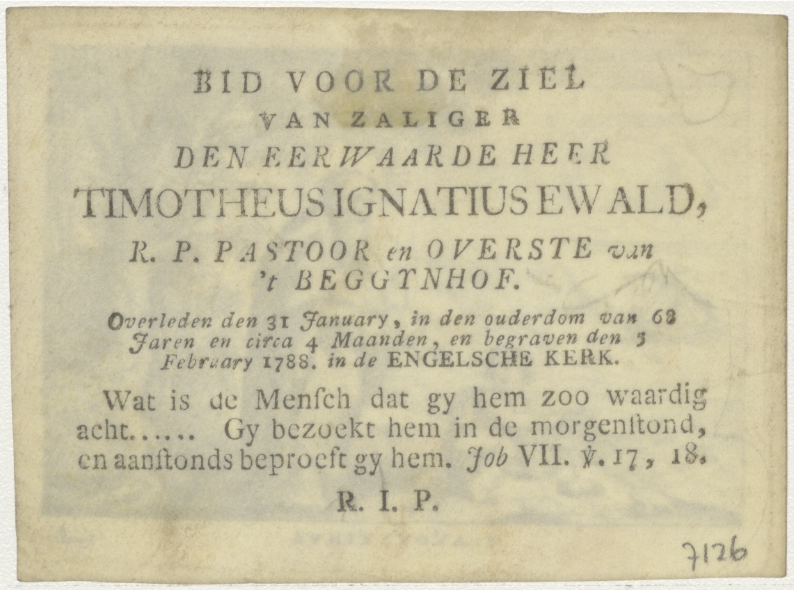 H. Augustinus, kz. Religieus; bid voor ziel Timotheusignatius Ewald (+1788) pastoor en overste Begijnhof Amsterdam