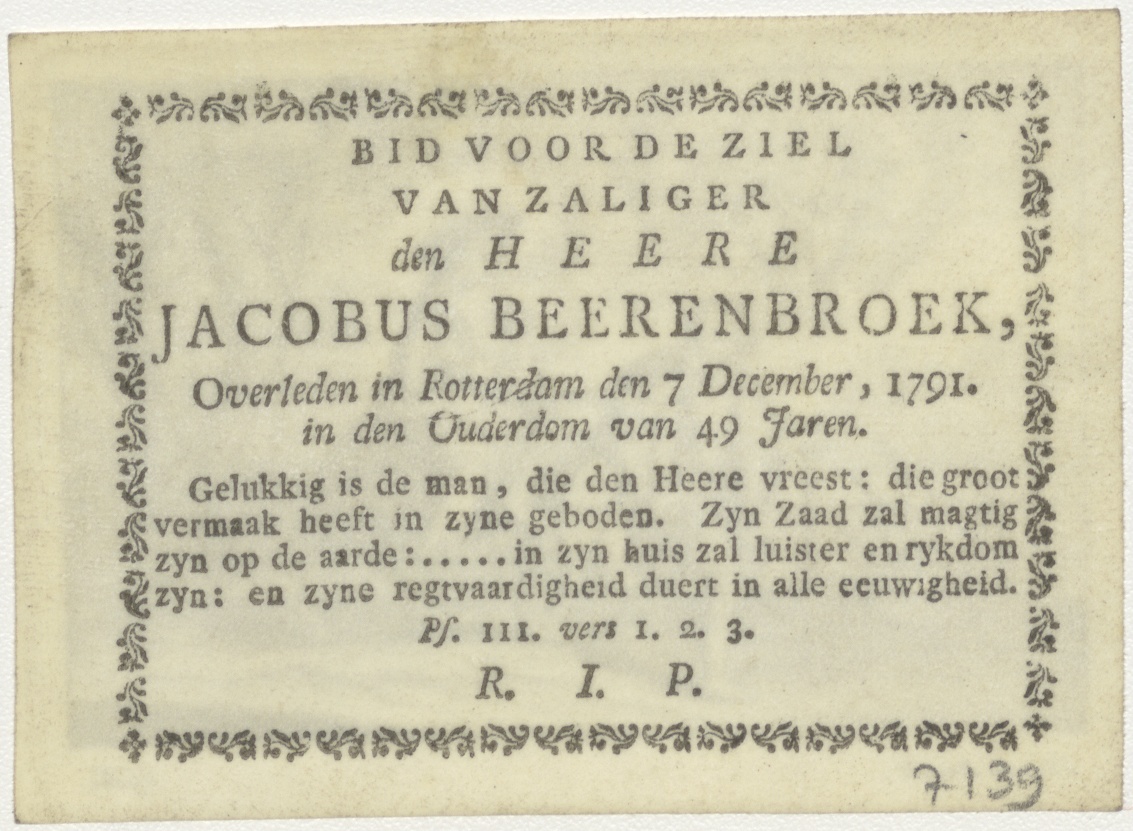 Vlucht naar Egypte, kz. Bid voor ziel Beerenbroek (+1791)
