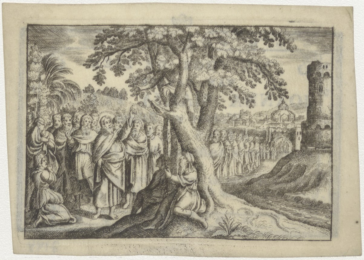 Christus met de tolenaar in de boom, kz. Bid voor ziel Pluys-Laarman (+1795) Amsterdam