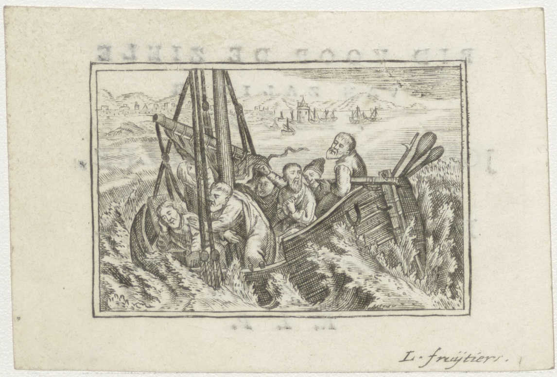 Christus in de vissersboot op het meer van Galilea, kz. Bid voor ziel Van Zeller-de Jonge (+1792) 's-Gravenhage