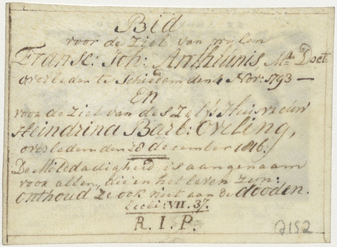 Amor divinus en Anima (1 Joan. 3), kz. Dubbelgebruik, bid voor ziel Antheunis-Oveling (1793) en (1816)