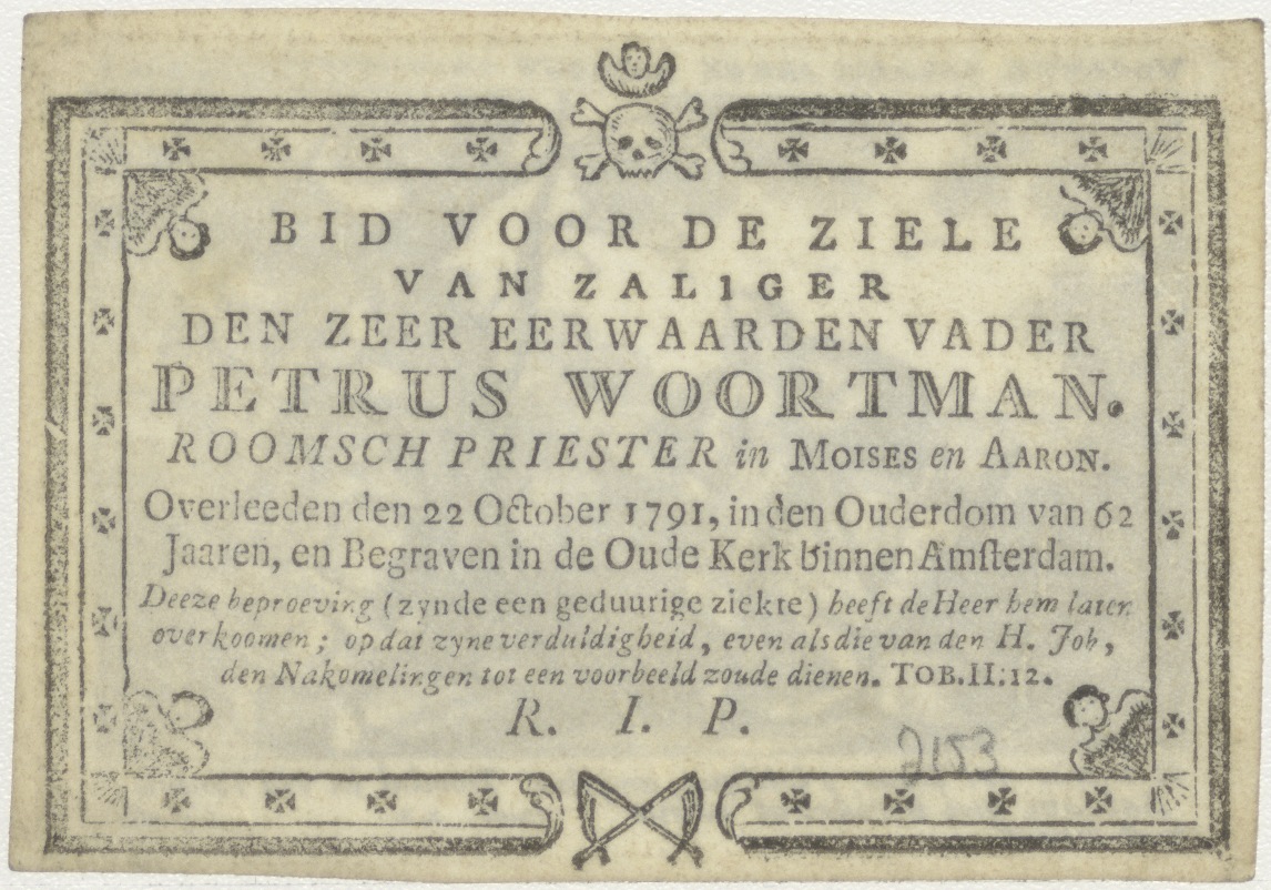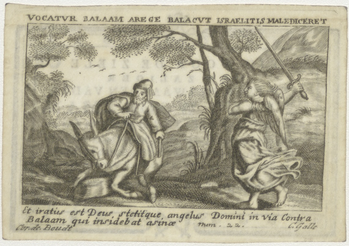 Bileam op de ezel met engel (Num. 22), kz. Religieus; bid voor ziel Petrus Woortman (+1791) pastoor Mozes en Aaron, Amsterdam