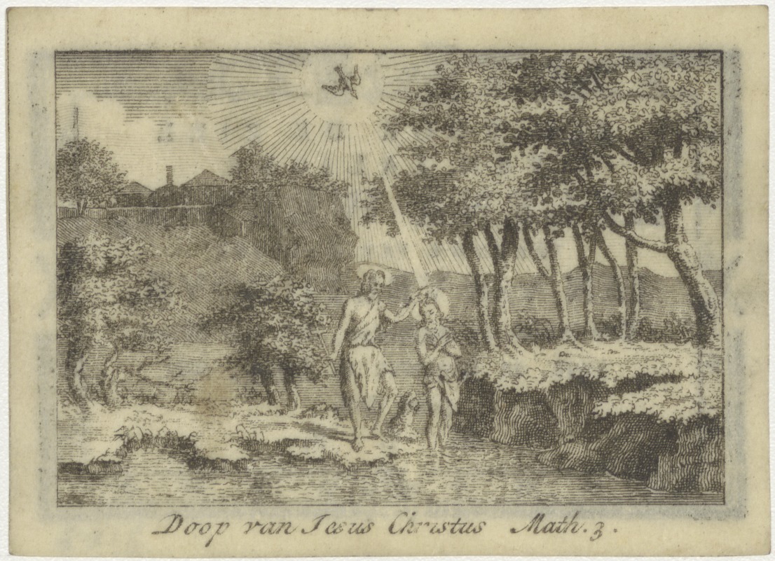 Doop van Christus in de Jordaan (Math. 3), kz. Bid voor ziel Weenix-Van Velthoove (+1798) Amsterdam