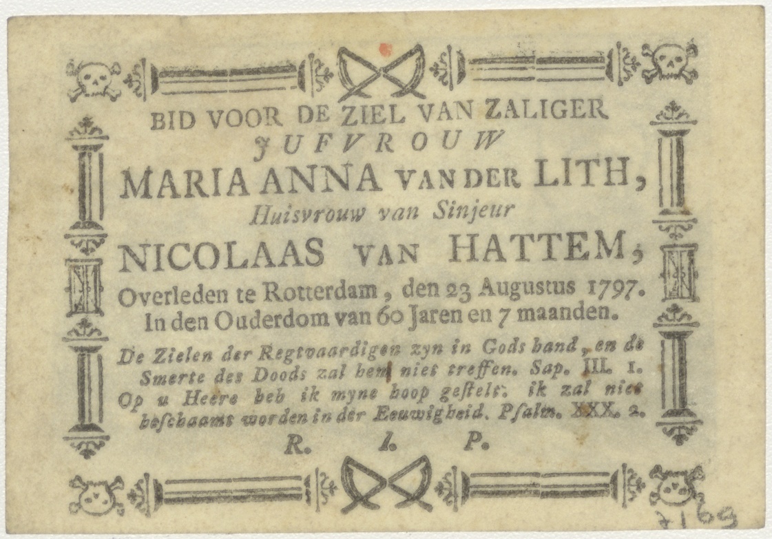 H. Elisabeth, kz. Bid voor ziel Maria Anna van Lith-van Hattem (+1797) Rotterdam