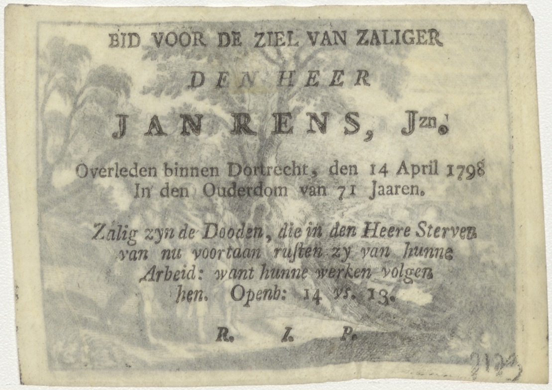 Christus en de Emmausgangers, kz. Bid voor ziel Rens jr. (+1798) Dordrecht