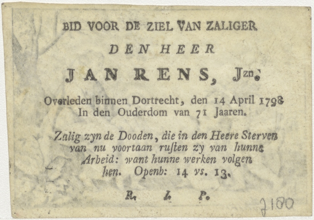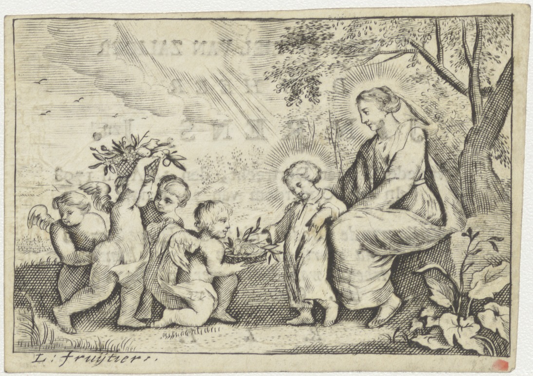 Maria met Christuskind en engelen, kz. Bid voor ziel Rens jr. (+1798) Dordrecht