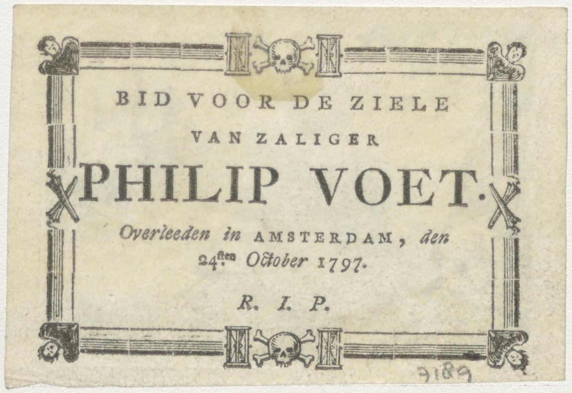H. Johannes op Patmos, kz. Bid voor ziel Voet (+1797) Amsterdam