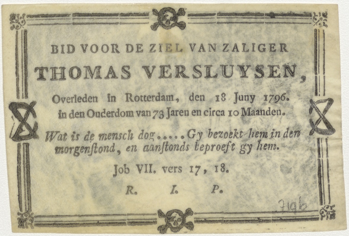 Pinksteren, kz. Bid voor ziel Versluysen (+1796) Rotterdam