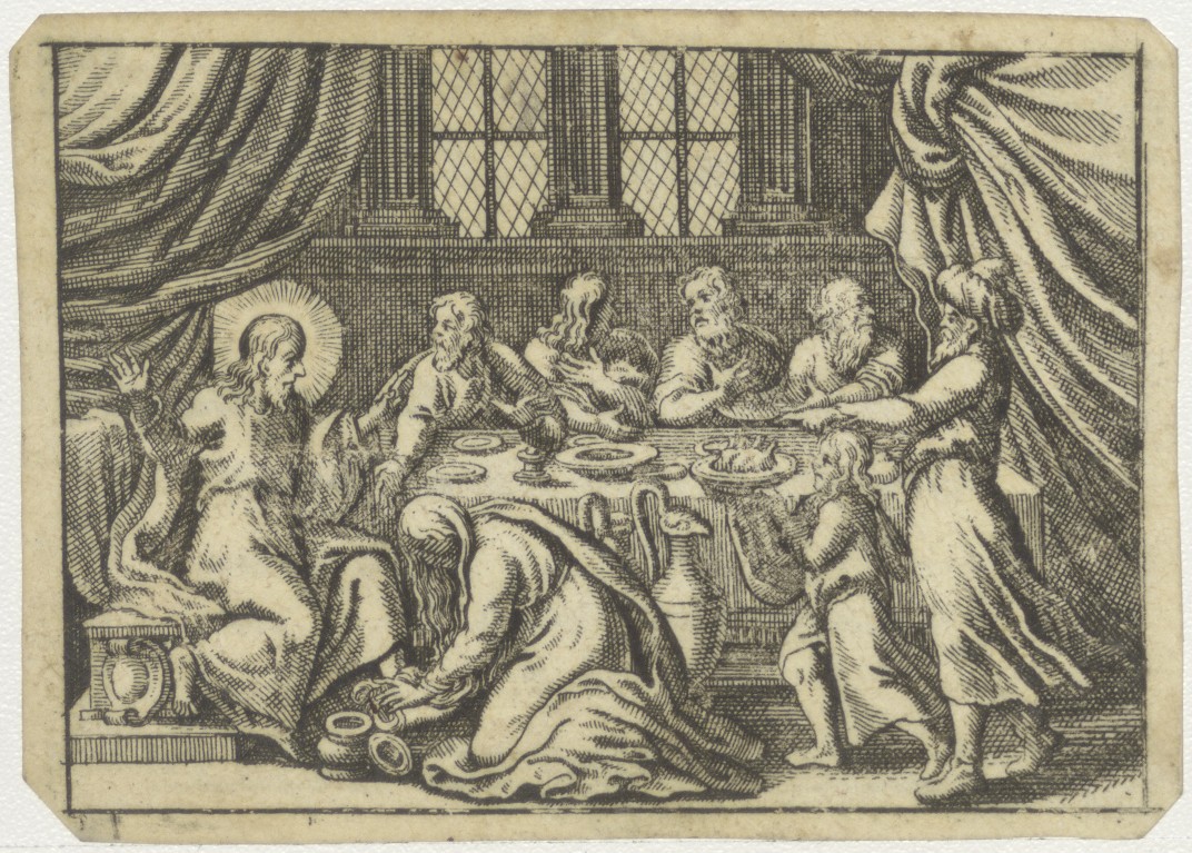 Christus predikt bij een maaltijd, kz. Bid voor ziel Van Campen, Leiden (+1800) Leiden