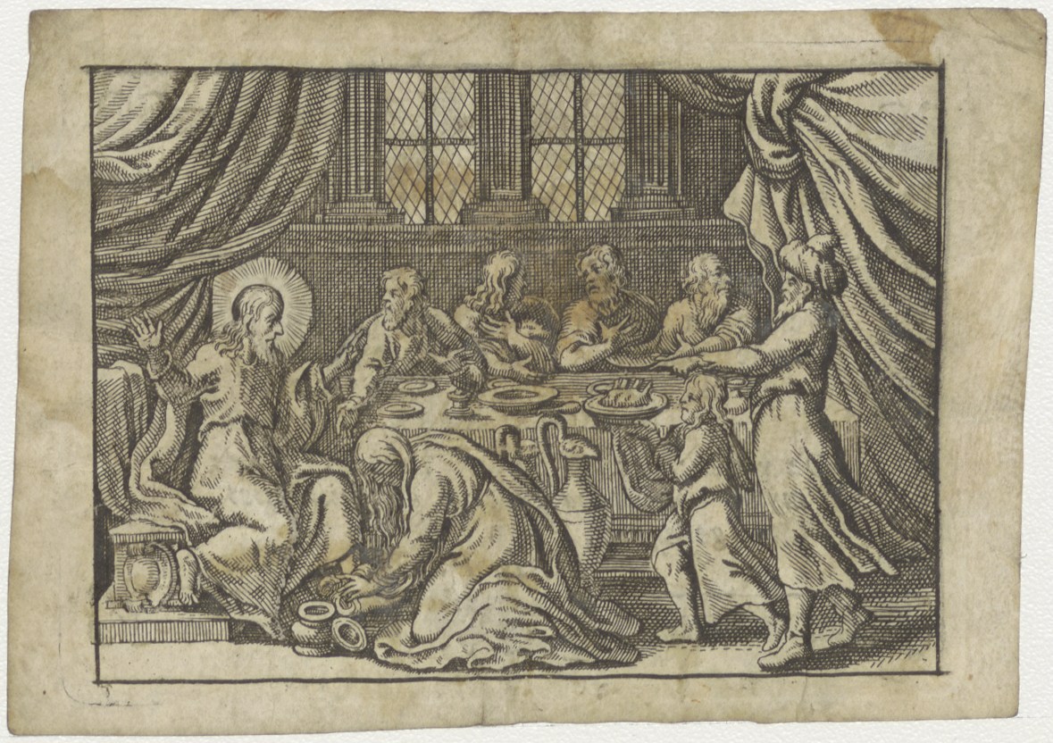 Christus predikt bij een maaltijd, kz. Bid voor ziel Heukensfeldt (+1801) Amsterdam