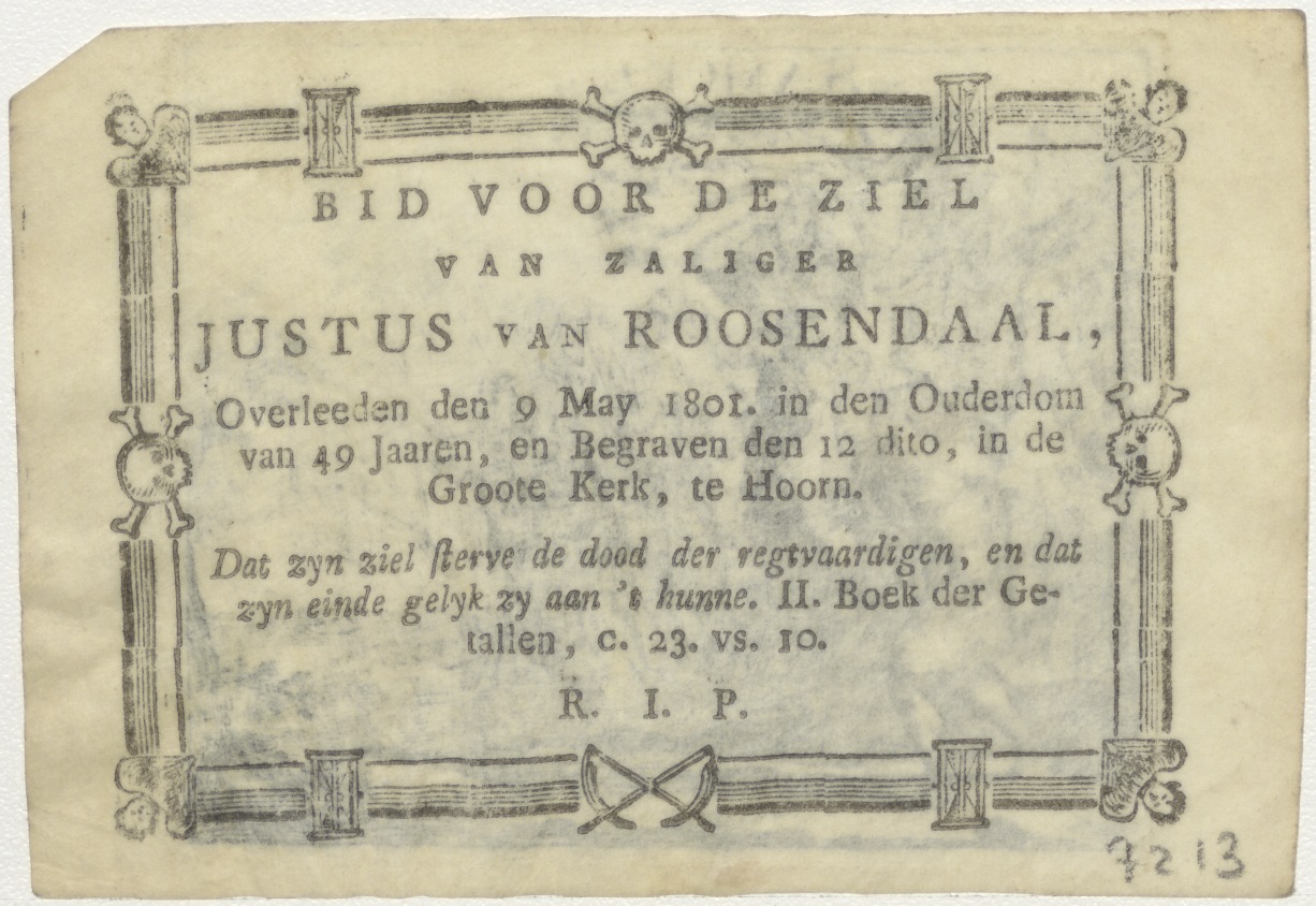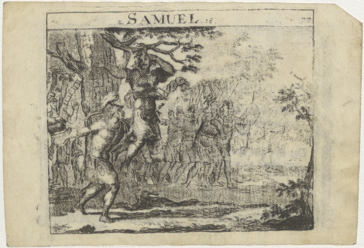 Absalom hangend aan de terebint (2 Sam. 18), kz. Bid voor ziel Roosendaal (+1801) Hoorn