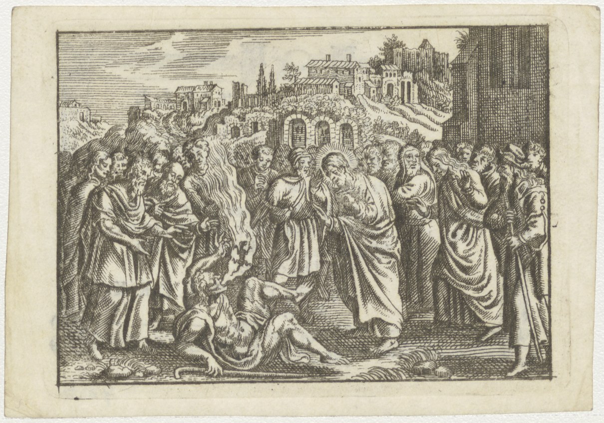Wonder van Christus, Christus drijft de duivel uit, kz. Bid voor ziel Adrianus Broekman (+1800) Bisschop van Haarlem, overleden te Amsterdam