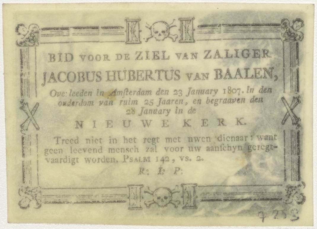 Johannes op Patmos, kz. Bid voor ziel Van Baalen (+1807) Amsterdam