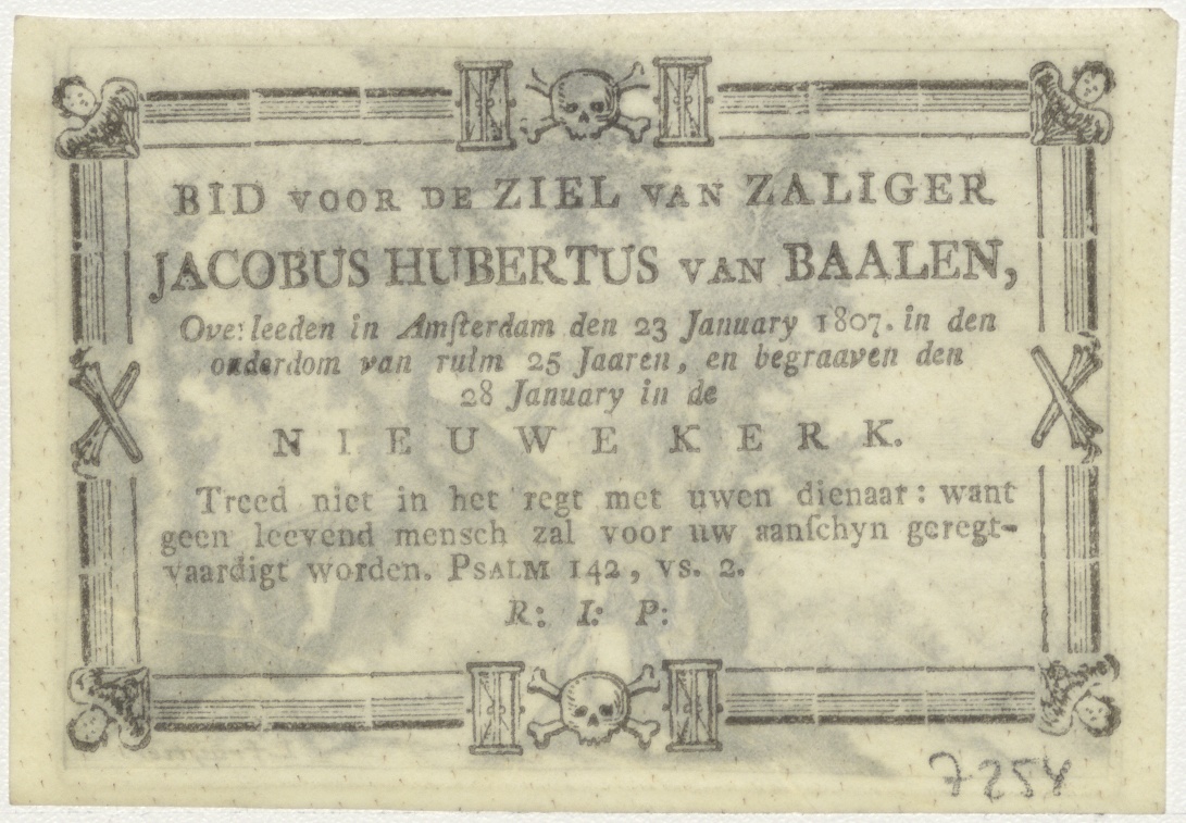 Kluizenaar biddend, kz. Bid voor ziel Van Baalen (+1807) Amsterdam