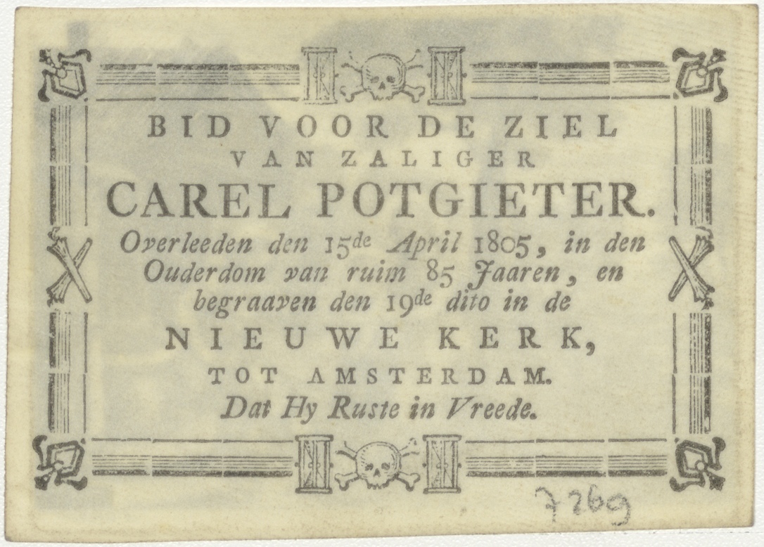 H. Familie bij put, kz. Bid voor ziel Potgieter (+1805) Amsterdam