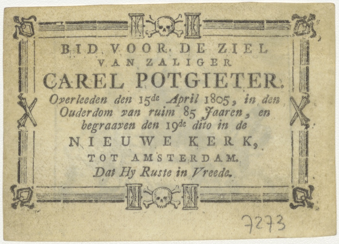 Triomfwagen van Christus getrokken door drie mannen, kz. Bid voor ziel Potgieter (+1805) Amsterdam