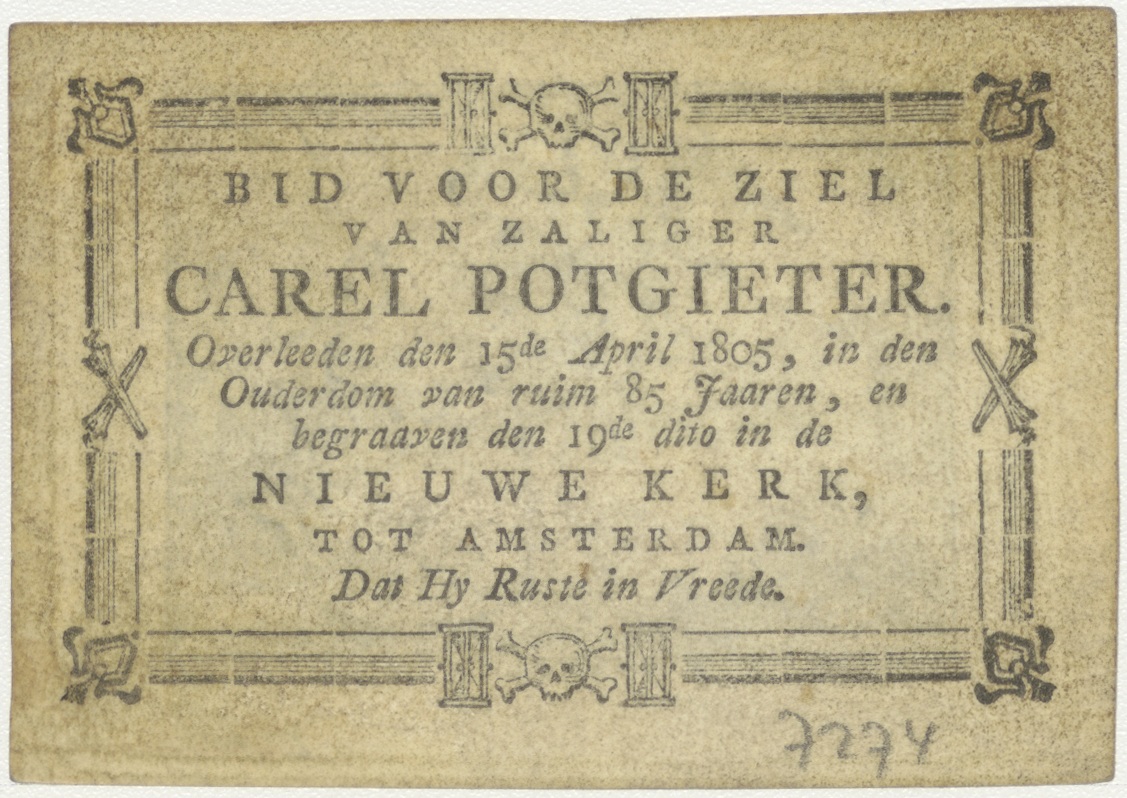 H. Dorothea, kz. Bid voor ziel Potgieter (+1805) Amsterdam