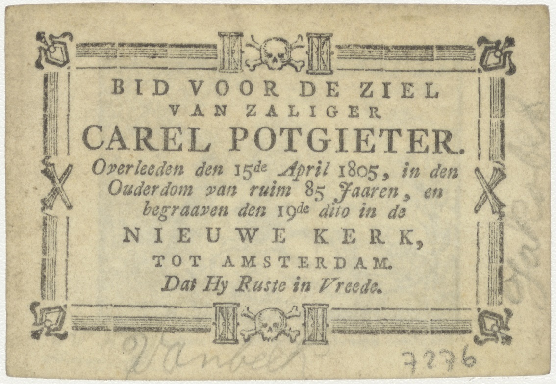 Amor en Anima, spelend, kz. Bid voor ziel Potgieter (+1805) Amsterdam
