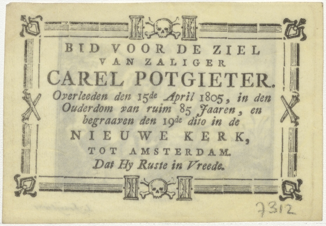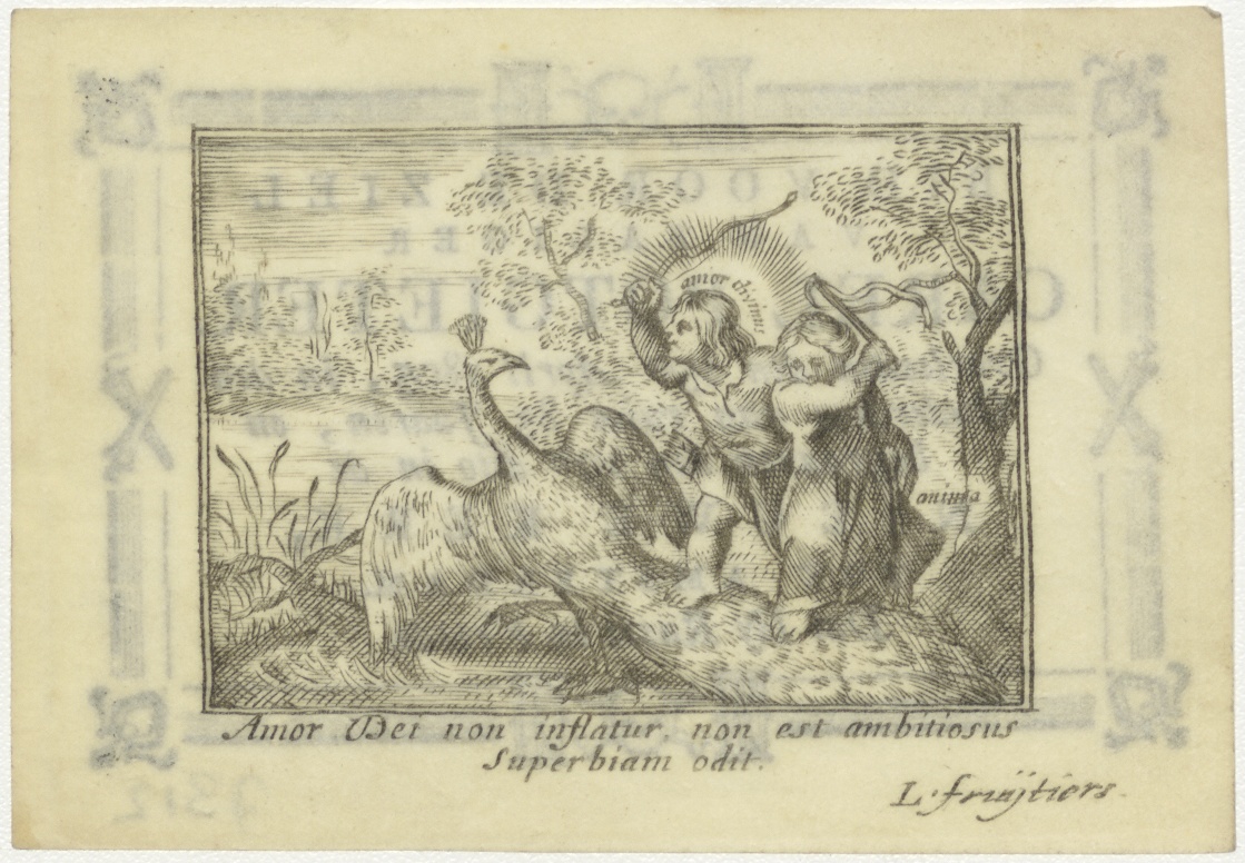 Amor divinus en Anima met pauw, kz. Bid voor ziel Potgieter (+1805)
