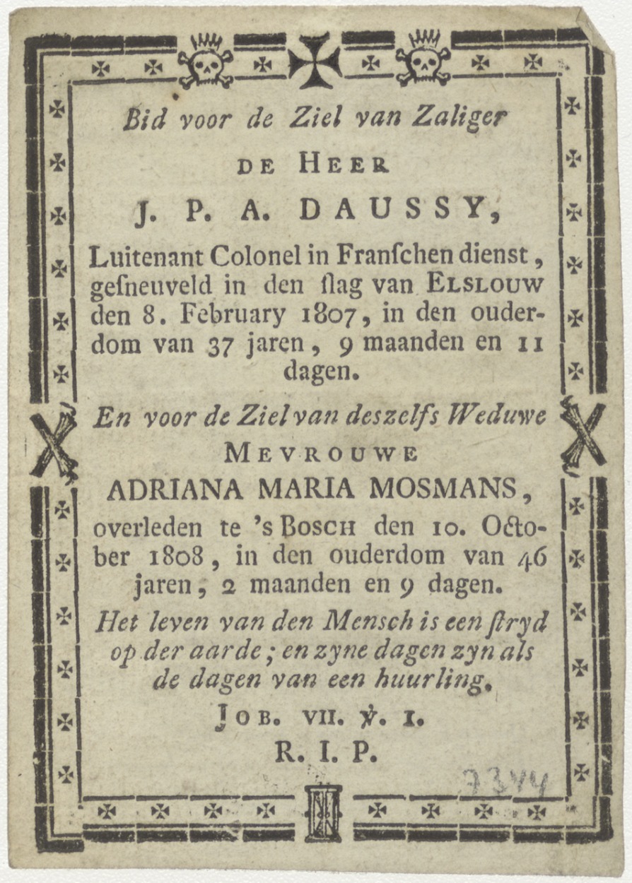 H. Johannes de Doper, kz. Bid voor ziel Danssy-Mosmans (+1807) luitenant-kolonel in Franse dienst, Den Bosch