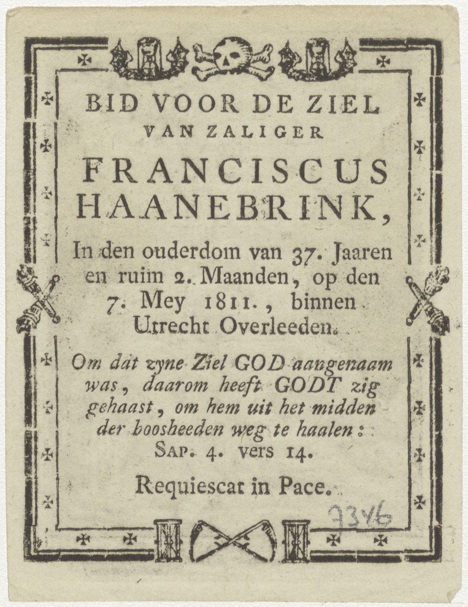 H. Johannes de Doper, kz. Bid voor ziel Kaanebrink (+1811) Utrecht