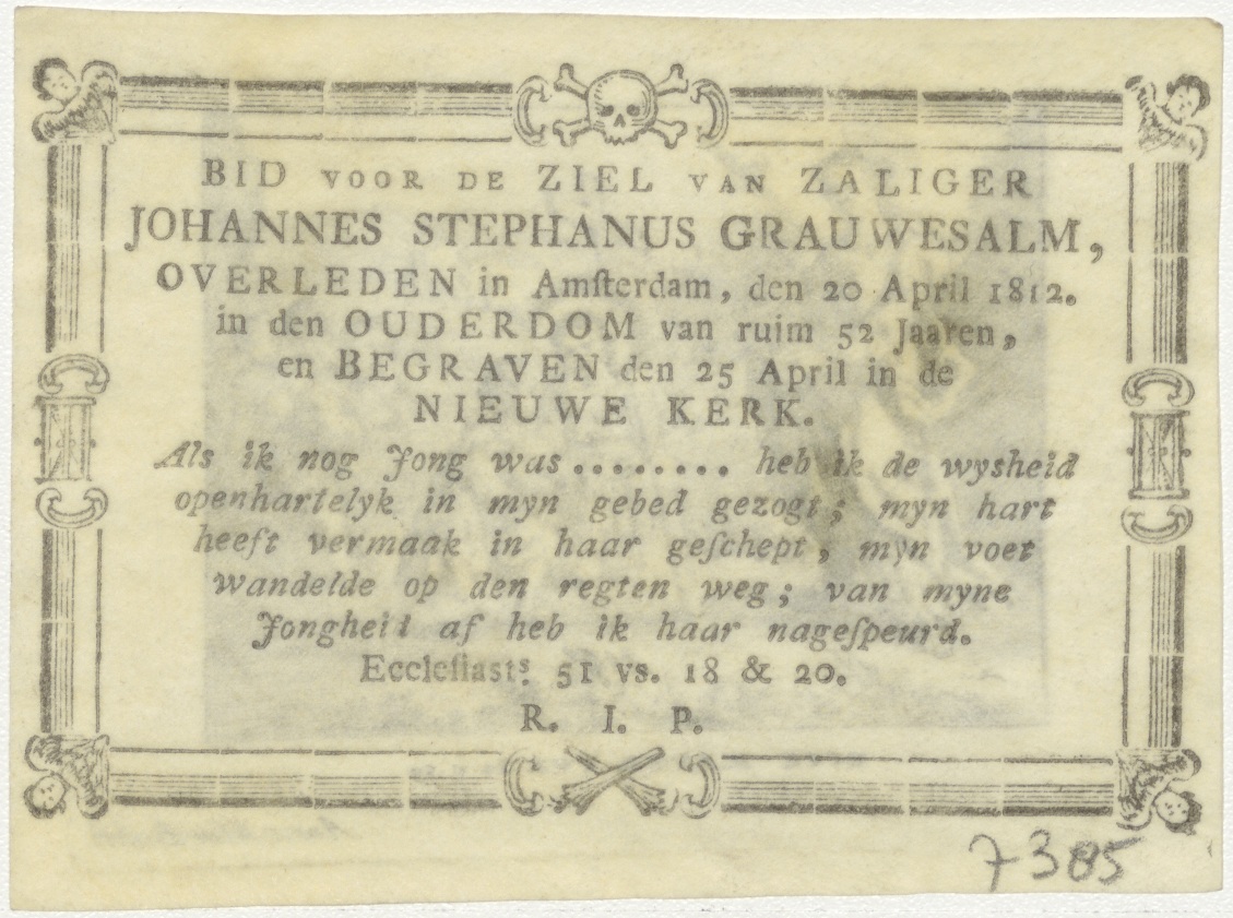 Maria met Christuskind en Johannes, kz. Bid voor ziel Grauwesalm (+1812) Amsterdam
