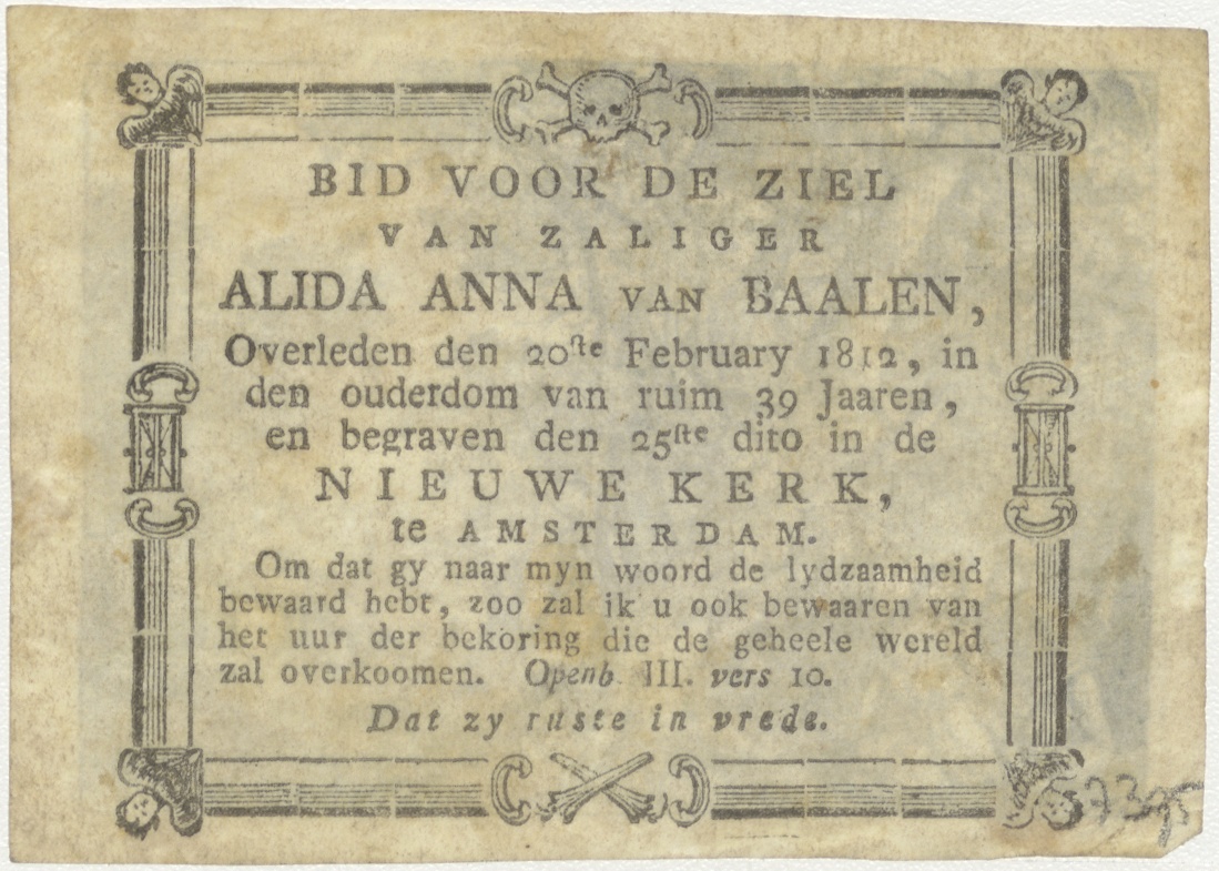 Rust op de vlucht naar Egypte, kz. Bid voor ziel Van Baalen (+1812) Amsterdam
