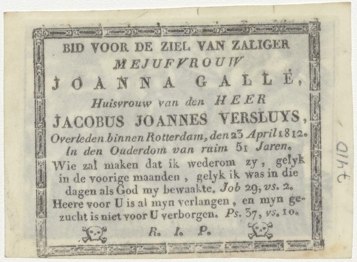 H. Maria van de rozenkrans, kz. Bid voor ziel Gallé-Versluys (+1812)