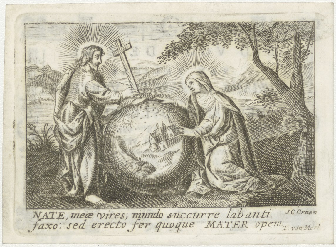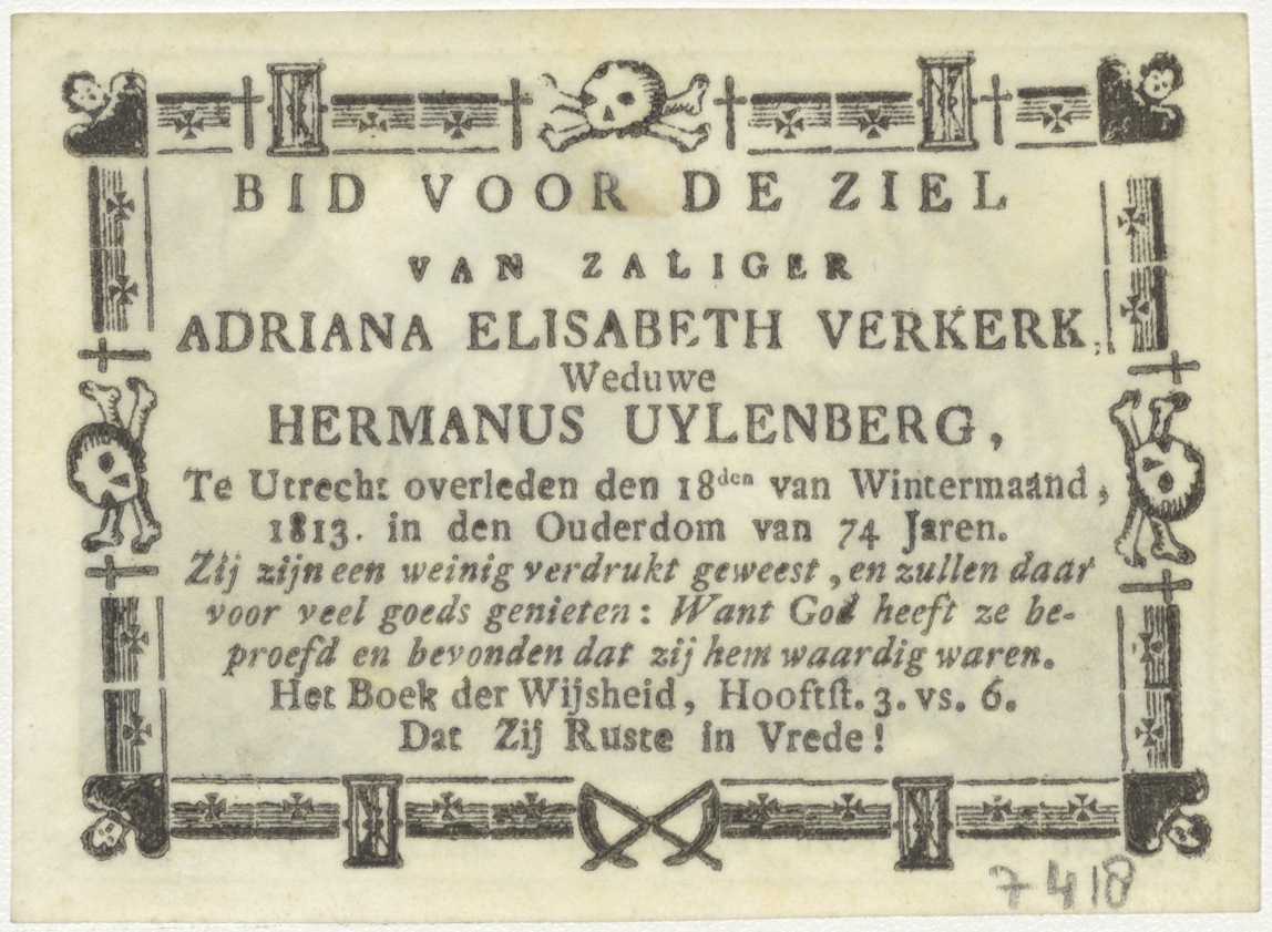 Christus met de werelbol en Maria, kz. Bid voor ziel Adriana Elisabeth Verkerk-Uylenberg (+1813) Utrecht