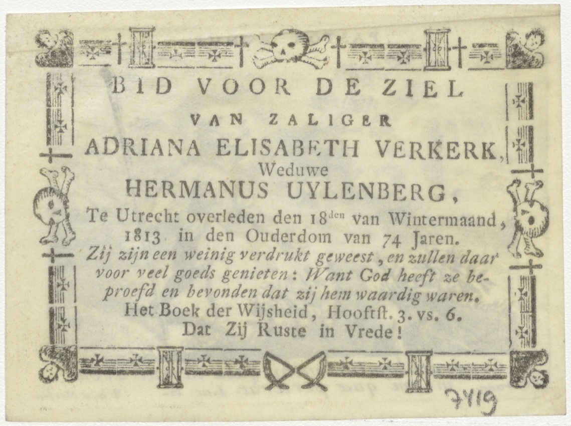 Christus als Pastor Bonus, kz. Bid voor ziel Adriana Elisabeth Verkerk-Uylenberg (+1813) Utrecht