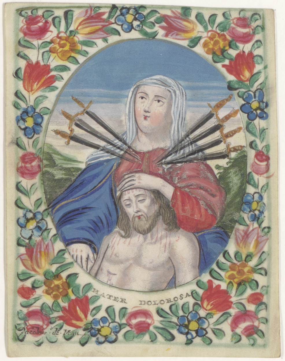 Maria, Mater Dolorosa, ingekleurd, kz. De Jager;1755;