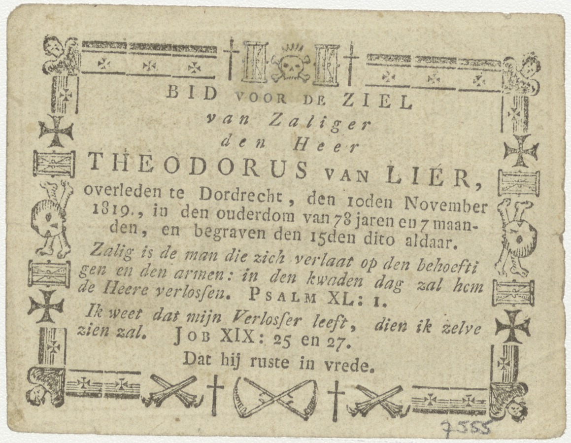 Christus draagt het kruis met Maria, kz. Bid voor ziel Van Lier (+1819) Dordrecht