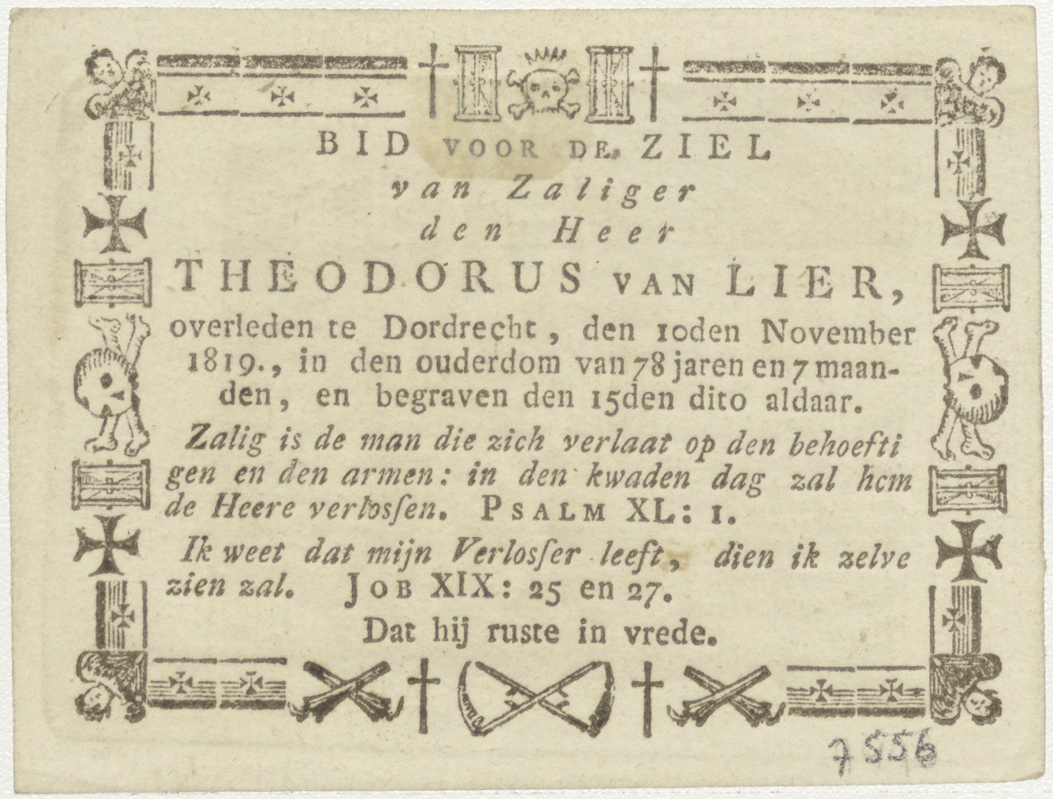 Maria met Christuskind, kz. Bid voor ziel Van Lier (+1819) Dordrecht