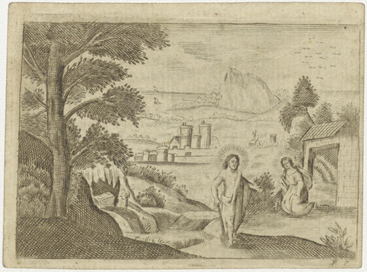 Christus in tuin met Maria Magdalena, kz. Bid voor ziel Van Lier (+1819) Dordrecht