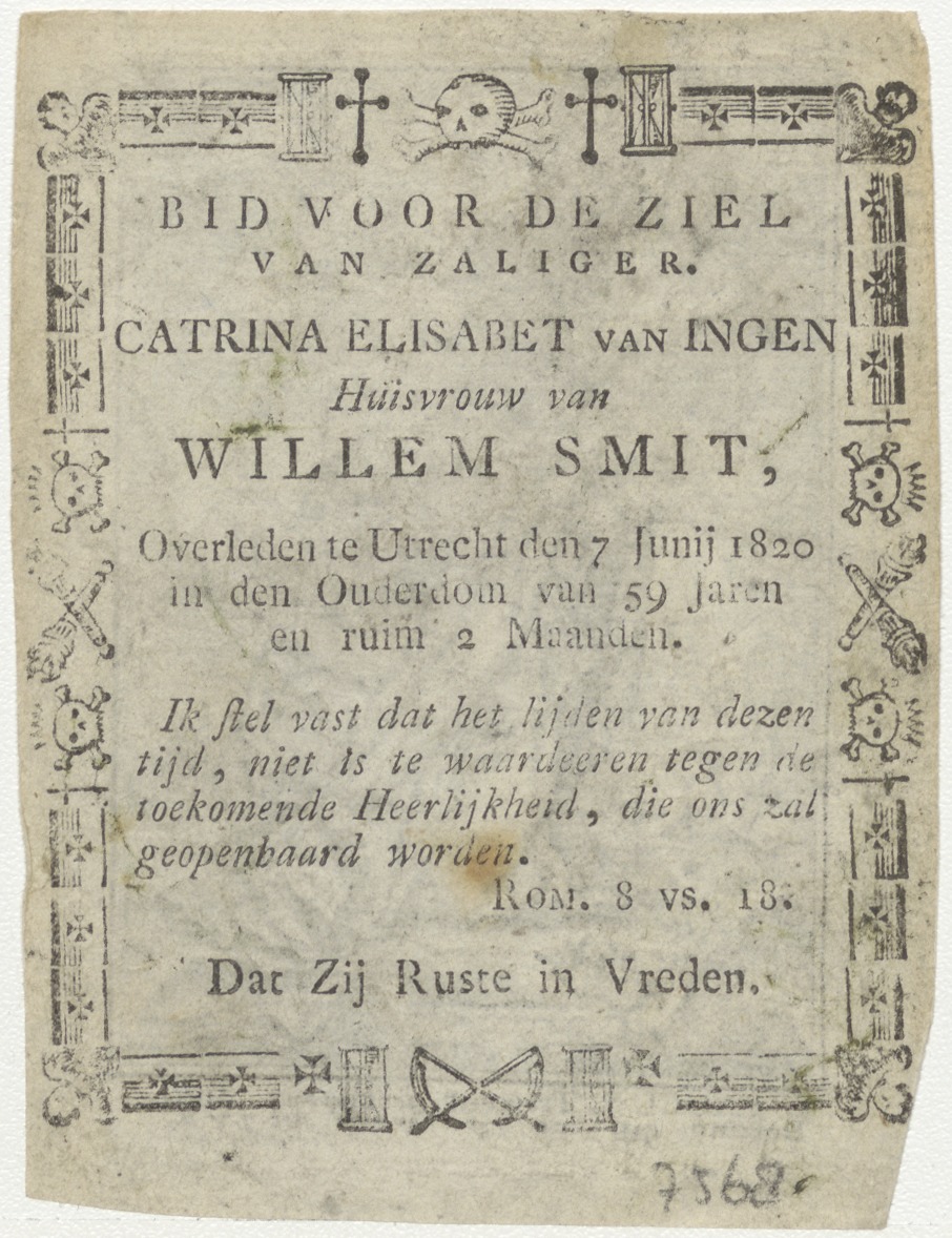 H. Paulus, kz. Bid voor ziel Smit-Van Ingen (+1820) Utrecht