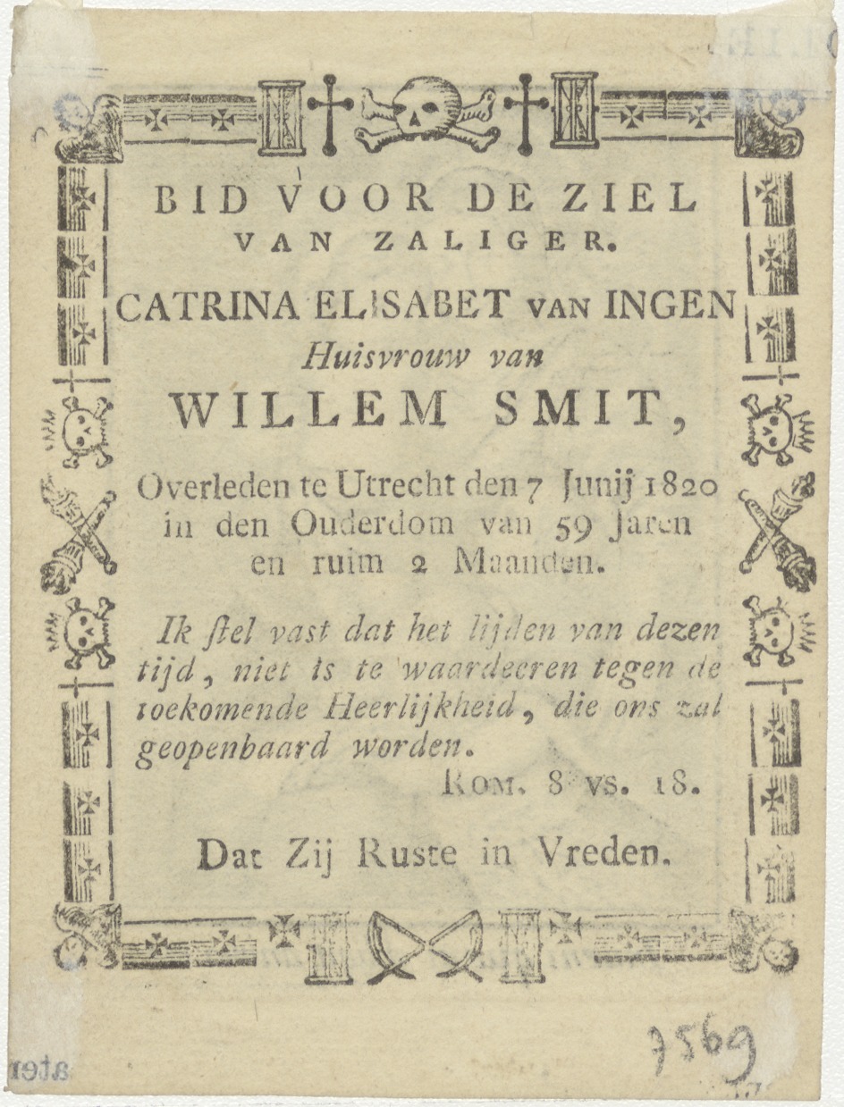 Maria met Christuskind en Johannes, kz. Bid voor ziel Smit-Van Ingen (+1820) Utrecht