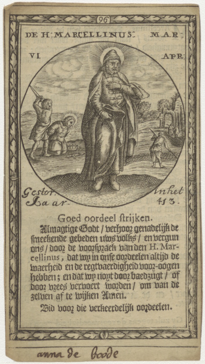 H. Marcellinus martelaar, naamfeest 6 april, gebed, Anna de Boode, kz. levensbeschrijving