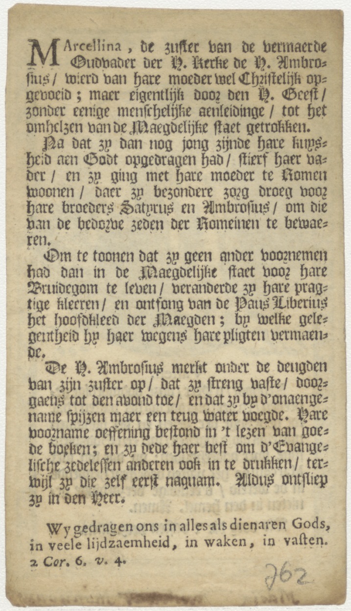 H. Marcellina, maagd, naamfeest (17 juli), gebed, Maria Monsjous(?), kz. levensbeschrijving