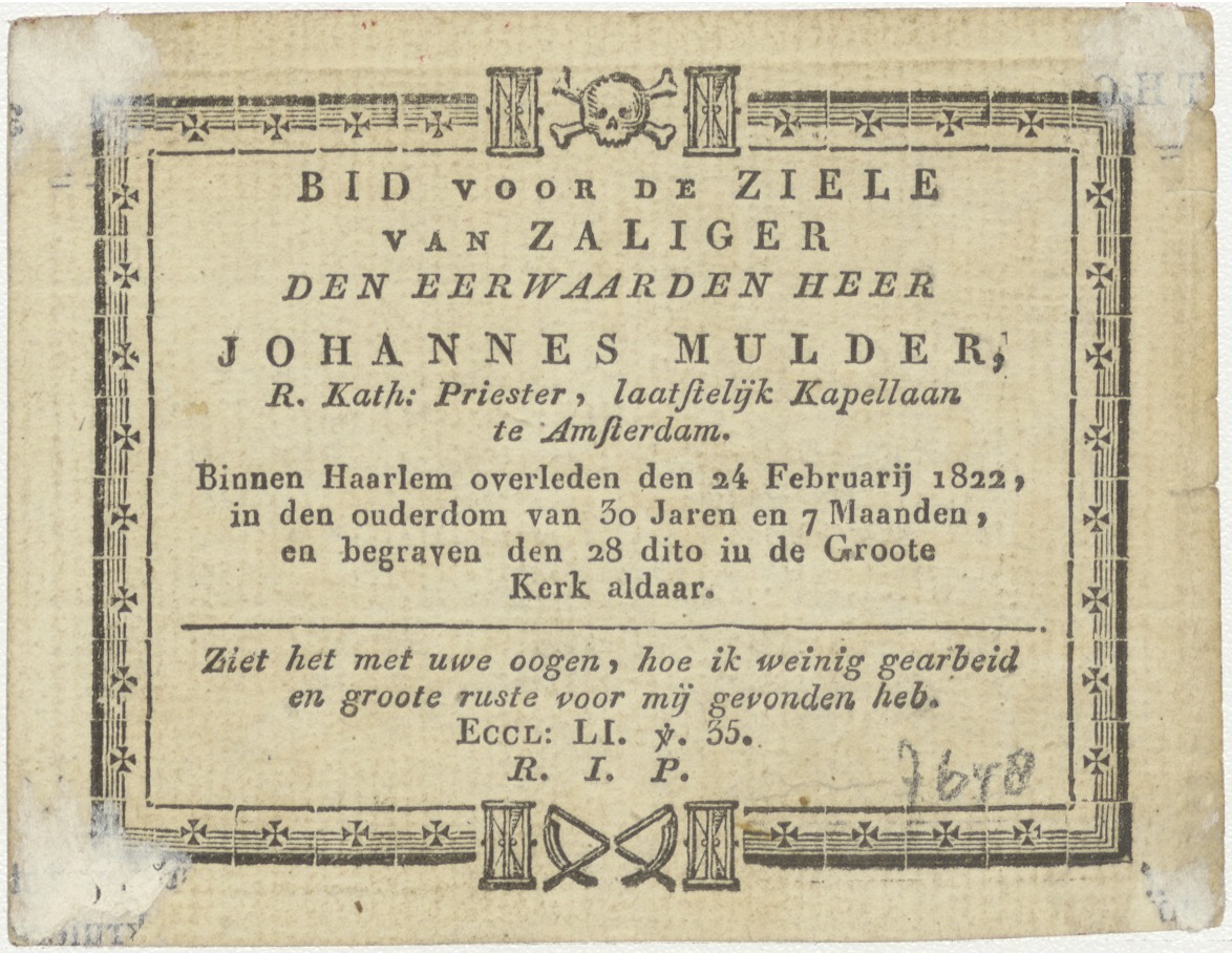 Rust op vlucht naar Egypte; H. Familie, kz. Religieus; bid voor ziel Mulder (+1822) pastoor, kapelaan te Amsterdam