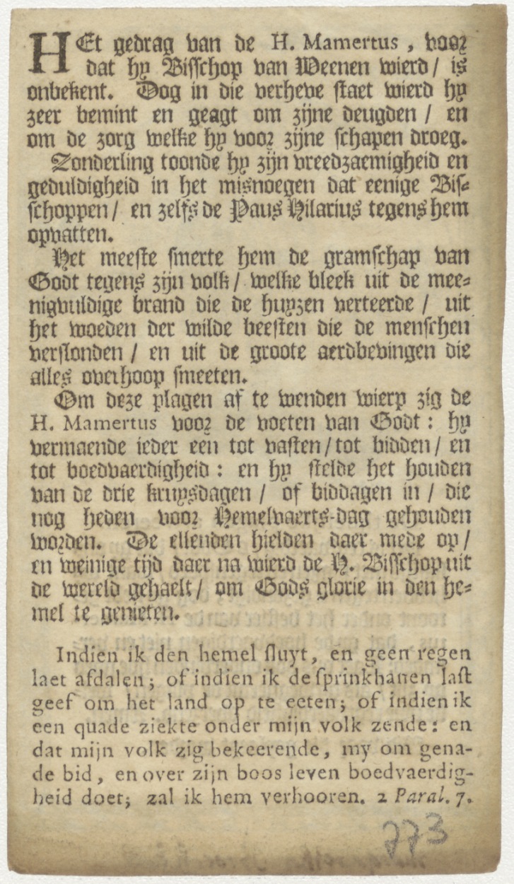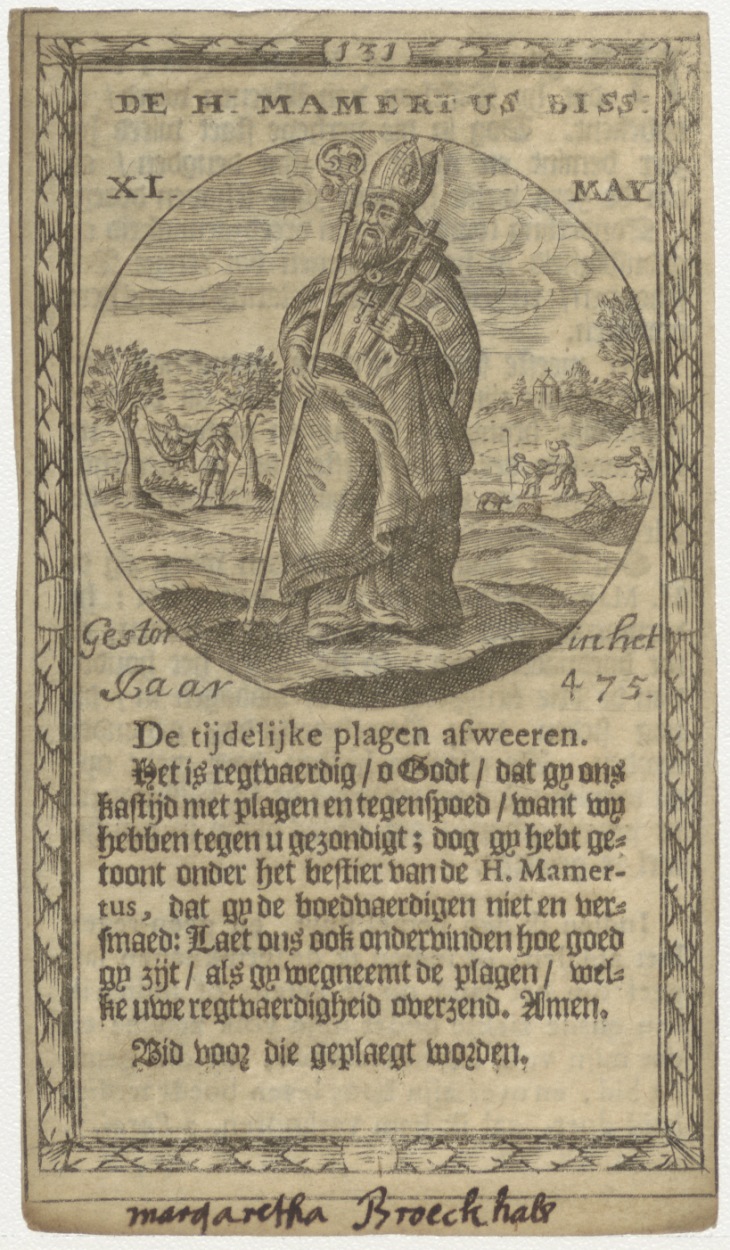 H. Mamertus, bisschop, naamfeest (11 mei) gebed, Margaretha Broeckhals, kz. levensbeschrijving