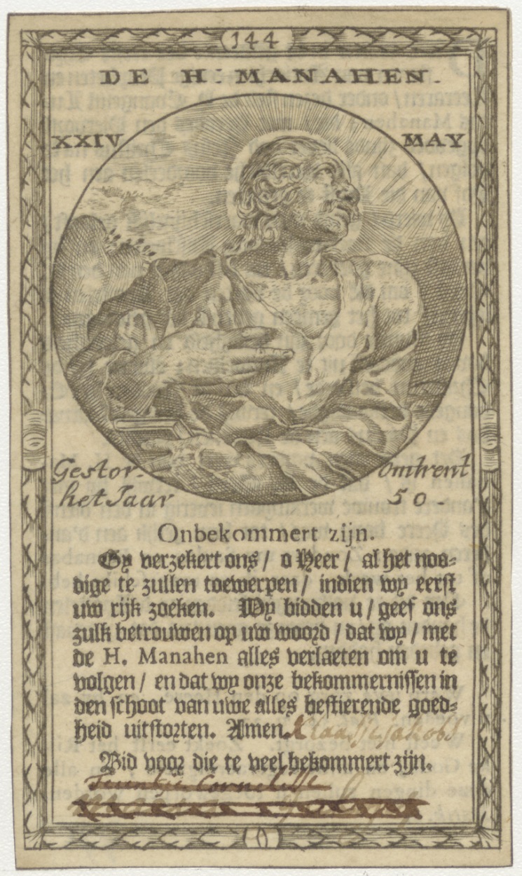 H. Manaken, naamfeest (24 mei), gebed, Klaasje Jakobs, kz. levensbeschrijving